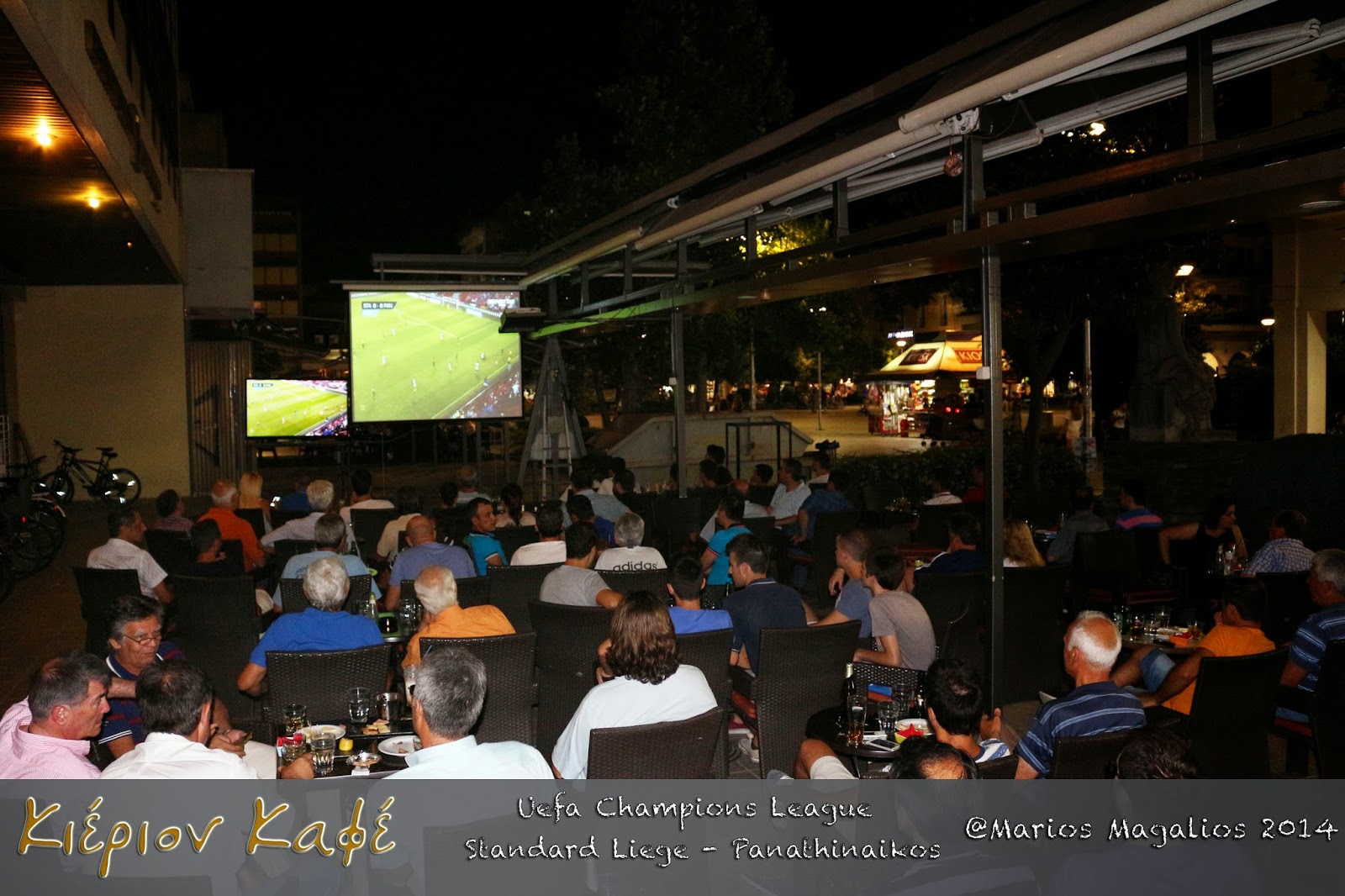 Τετάρτη βράδυ(30/7/14) καταπληκτική βραδιά στο Κιέριον Καφέ που οι πιστοί φίλαθλοι, προσήλθαν για να παρακολουθήσουν το ευρωπαικό παιχνίδι του Παναθηναϊκού με την  Σταντάρ Λιέγης για το Uefa Champions League , σε 8 τηλεοράσεις των 60inc. και σε 3 projectors , που για ακόμη μια φορά έζησαν τη μαγεία του γηπέδου αποκλειστικά και μόνο στο καλύτερο καφέ : Κιέριον Καφέ !!